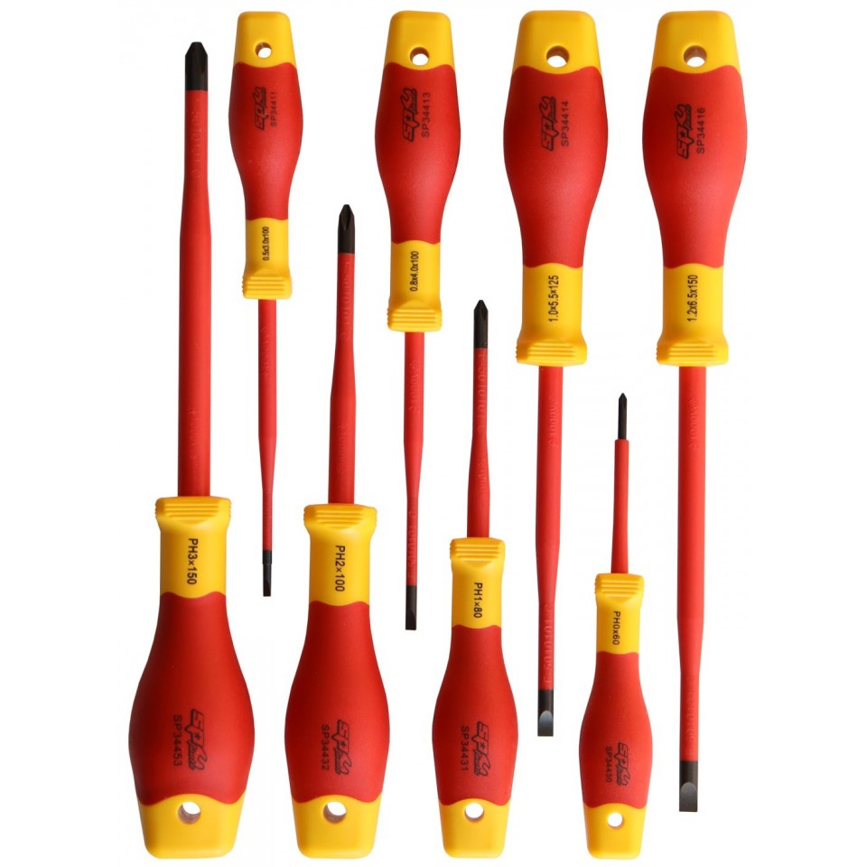 Die ersten 4 Schraubendreher in diesem Set sind Schlitzschraubendreher, die sich perfekt für den Umgang mit Steckdosen, Schaltern und anderen spannungsführenden elektrischen Komponenten eignen. Die flache Klingenspitze ermöglicht ein schnelles und einfaches Einführen in Klemmleisten und andere ähnliche Anwendungen.