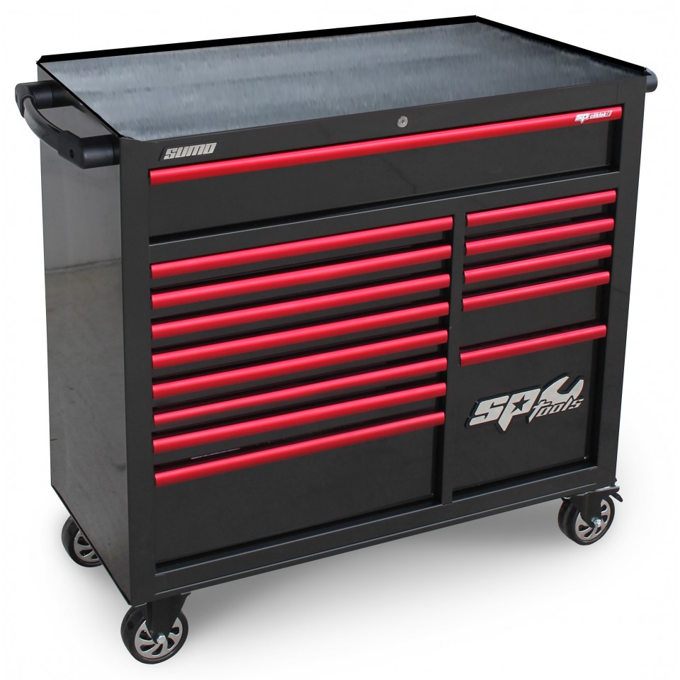 The SP SUMO Series is a very solid cart that is completely welded with a double-walled construction. All this is finished with a double layer of powder coating to guarantee a long lifetime. All this in combination with the ball-bearing drawer slides with softclose makes this the ideal trolley with an excellent lifetime. This model also has a central locking system with a unique key on the front of the trolley/box and clicklok drawer locking on all drawers.